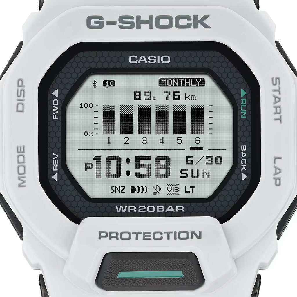 Hodinky Casio G-Shock G-Squad GBD 200-7 majú digitálny displej, ktorý zobrazuje dátum, deň v týždni, budík a mnoho ďalších funkcií. Hodinky sú zamerané na športovcov, takže majú zabudovaný krokomer a možnosť pripojenia k telefónu cez Bluetooth, takže môžete ľahko sledovať svoju dennú aktivitu. Hodinky sú vybavené stopkami, odpočítavaním, intervalovým časovačom, časom na kolo, tempom, priemernou rýchlosťou, vzdialenosťou atď.