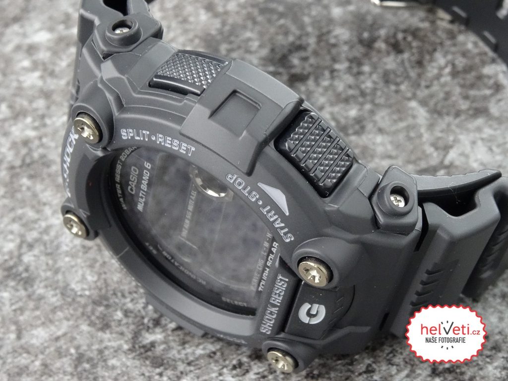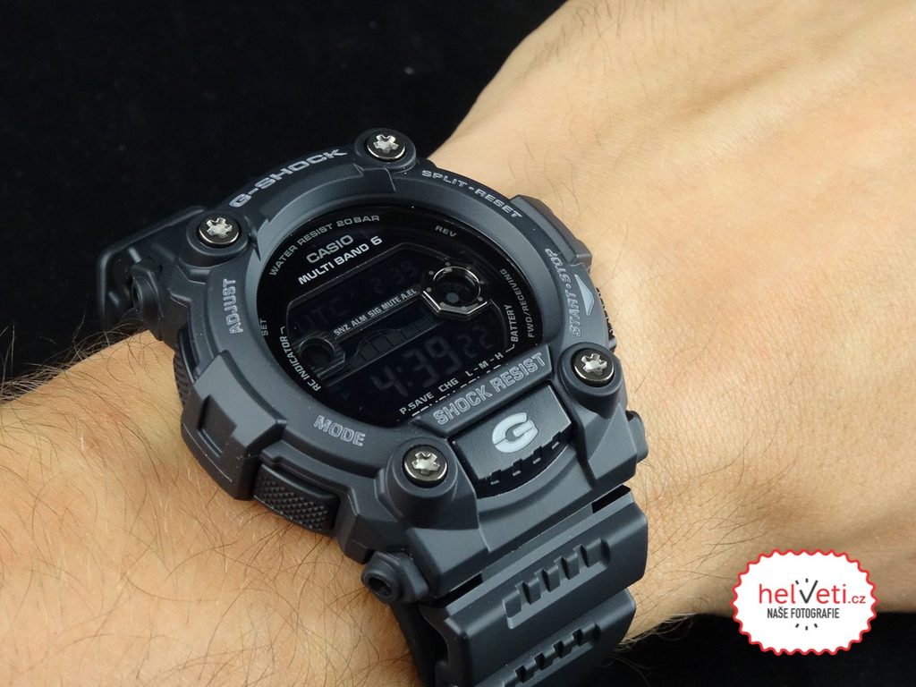 Casio G-Shock GW 7900B-1 má digitálny ciferník, ktorý zobrazuje dátum, deň v týždni, stopky, budík a mnohé ďalšie funkcie. Je napájaný solárnou energiou a rádiový prijímač je maximálne presný. Puzdro hodiniek vrátane remienka je gumové. Ciferník je chránený minerálnym sklom. Priemer puzdra 50 mm ho radí medzi väčšie hodinky. Vodotesnosť tohto modelu je 200M, takže s hodinkami môžete bez problémov plávať alebo sa dokonca potápať.