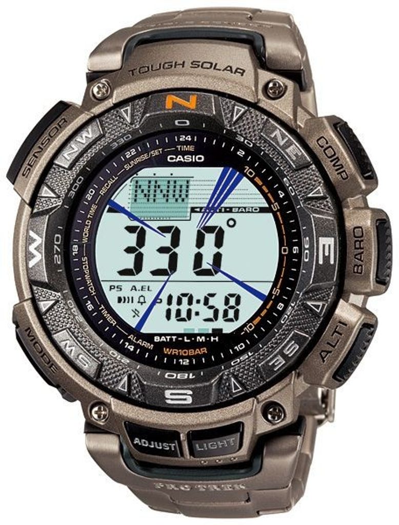 Casio PRG 240T-7 je model z radu Pro Trek, ktorý sa vyznačuje použitím prvkov spojených s pobytom v prírode. Patrí medzi ne termometer s meraním od -10 do 60 °C, výškomer do 10 000 m, kompas, barometer, indikácia východu a západu slnka. Výhodou hodiniek je solárne napájanie, pri ktorom sa batéria hodiniek dobíja svetlom.