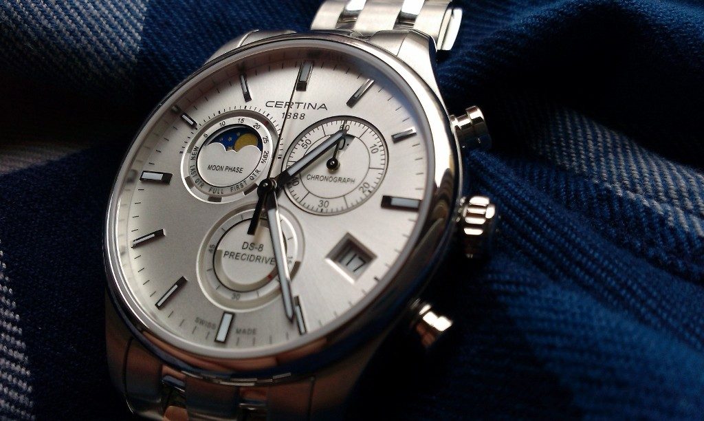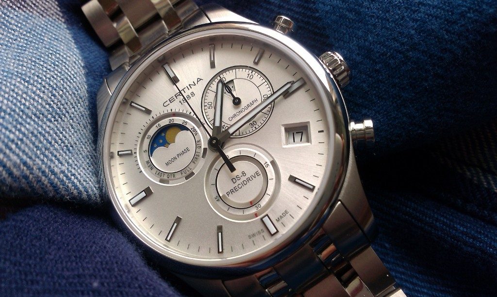 Vysoko presné, elegantné a zároveň odolné hodinky Certina DS-8 Chronograph Moon Phase C033.450.11.031.00 sú vybavené presným strojčekom Precidrive. Hodinky sú vhodné na bežné nosenie aj do spoločnosti a vďaka priemeru puzdra 42 mm padnú do každej mužskej ruky.