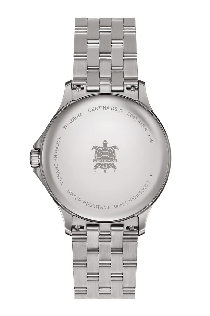 Hodinky Certina C045.410.44.041.00, ktoré patria do modelového radu DS-8 Gent, majú dátumovku a vodotesnosť 100 m (10 bar ) - sú teda vhodné na pravidelné plávanie. Detailne spracovaný modrý ciferník je chránený antireflexným zafírovým sklíčkom, ktoré je odolné voči akémukoľvek poškriabaniu. Puzdro hodiniek je vyrobené z titánu, vrátane náťahu.