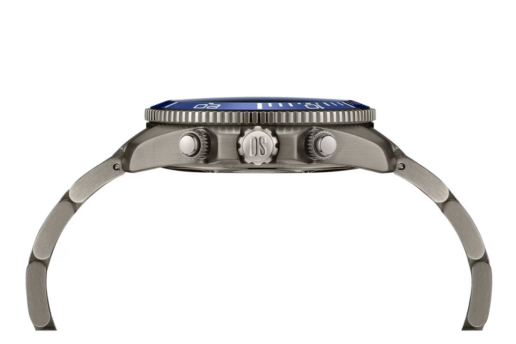 Hodinky ponúkajú užitočnú funkciu stopiek s presnosťou merania na desatinu sekundy a možnosťou sledovania času až do 30 minút. Detailný modrý ciferník je chránený antireflexným zafírovým sklíčkom, ktoré je odolné voči akémukoľvek poškriabaniu. Na ručičkách a indexoch je nanesená luminiscenčná vrstva SuperLuminova, ktorá uľahčuje čítanie času za zhoršených svetelných podmienok. Puzdro hodiniek je vyrobené z titánu, ktoré dopĺňa náramok z rovnakého materiálu so skladacou sponou. Titán je ľahší ako oceľ a má aj antialergické vlastnosti.
