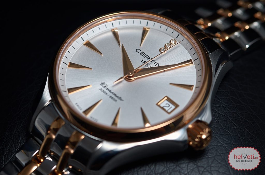 Švajčiarsky strojček ETA F03.411 Precidrive s certifikátom COSC zaručuje presnosť chodu s maximálnou odchýlkou +-10 sekúnd za rok a neuveriteľných +-0,07 sekundy za deň, navyše má indikáciu slabej batérie. Hodinky s týmto certifikátom nesú označenie Chronometer.