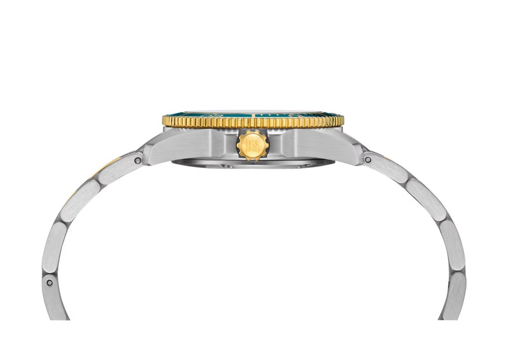 Puzdro hodiniek je vyrobené z nehrdzavejúcej ocele a na zápästí ho drží náramok z rovnakého materiálu. Puzdro aj náramok sú čiastočne povrchovo upravené PVD zlatom. Model má vodotesnosť 300 M, takže je vhodný na plávanie a potápanie. Vďaka potápačskej lunete s hliníkovou vložkou tieto hodinky ešte viac zdôrazňujú svoj potápačský štýl.