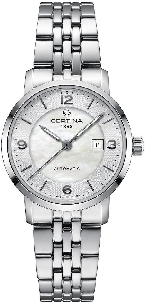 Hodinky Certina C035.007.11.117.00 , ktoré súsúčasťou modelového radu DS Caimano Lady , sú novinkou na rok 2020. Detailne prepracovaný perleťový ciferník chráni zafírové sklíčko odolné proti poškriabaniu s antireflexnou vrstvou na jednej strane. Na 3. hodine nájdeme decentný ukazovateľ dátumu. Puzdro hodiniek vrátane strojčeka je vyrobené z nehrdzavejúcej ocele. Hodinky majú vodotesnosť 100 M - sú teda vhodné na bežné plávanie a ľahšie potápanie.