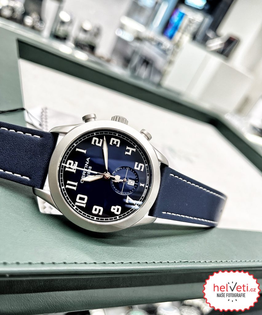 Hodinky Certina C024.617.16.042.00 majú puzdro z ušľachtilej ocele a na zápästí ich drží modrý kožený remienok s tŕňovou sponou. Vo vnútri puzdra spoľahlivo tiká švajčiarsky batériový strojček ETA 251.264. Veľký a prehľadný ciferník chráni antireflexné zafírové sklíčko, ktoré je odolné voči akémukoľvek poškriabaniu a vďaka antireflexnej vrstve je ciferník čitateľný aj na ostrom slnečnom svetle.