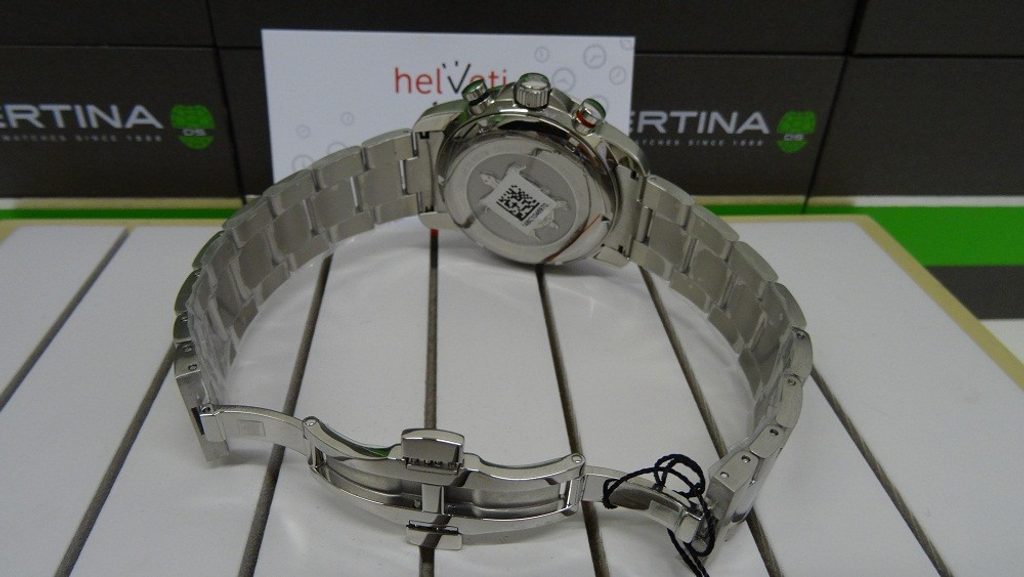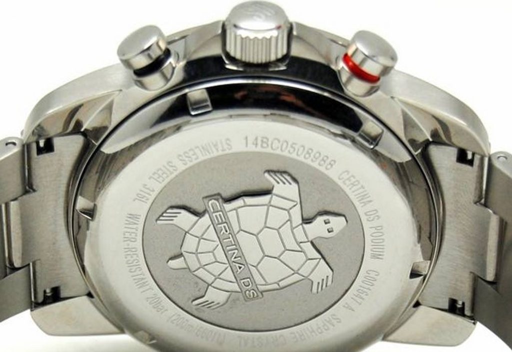 Hodinky Certina C001.647.11.057.00, ktoré patria do modelového radu DS Podium , sú vybavené ukazovateľom dátumu, tachymetrom a stopkami, ktoré merajú s presnosťou na 1/100 sekundy. Detailne prepracovaný ciferník je chránený antireflexným zafírovým sklíčkom, ktoré je odolné voči akémukoľvek poškriabaniu a vďaka antireflexnej vrstve je ciferník čitateľný aj na ostrom slnečnom svetle. Puzdro hodiniek je vyrobené z nehrdzavejúcej ocele vrátane strojčeka. Zaujímavým prvkom sú dve centrálne ručičky. Normálna, v rozsahu 0-60 sekúnd, a potom druhá, zvýraznená červenou farbou, ktorá ukazuje presnosť na 1/100 sekundy. Vodotesnosť tohto modelu je20 ATM, takže je vhodný aj na hlbokomorské potápanie.