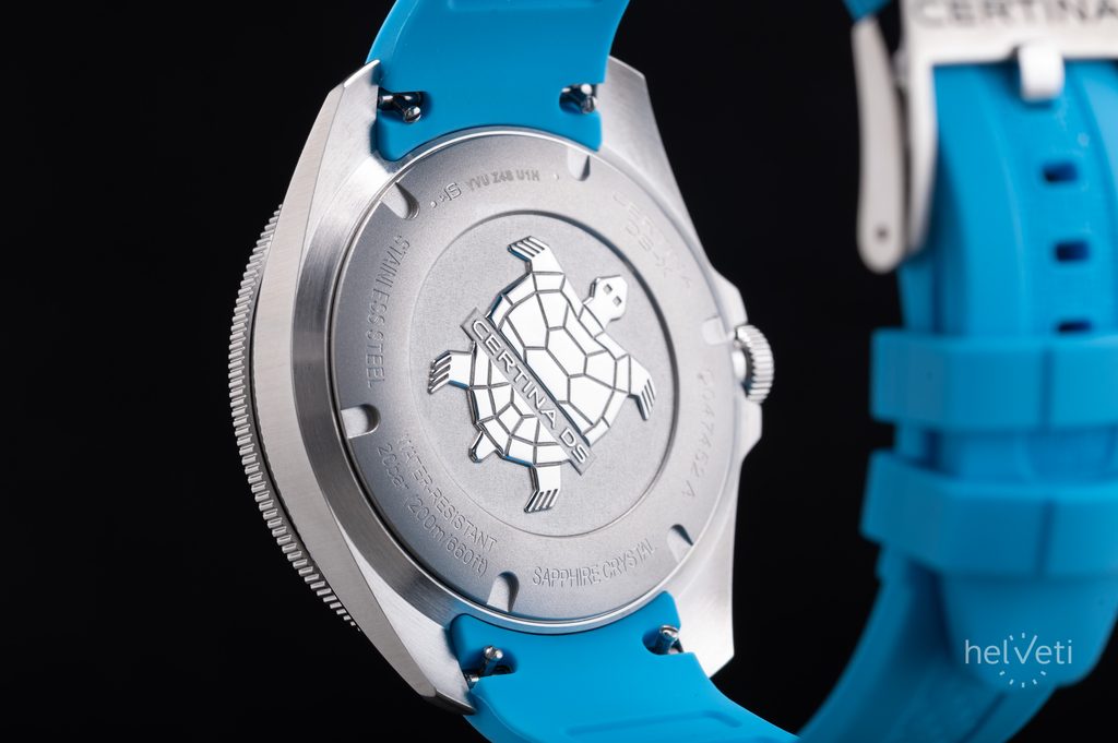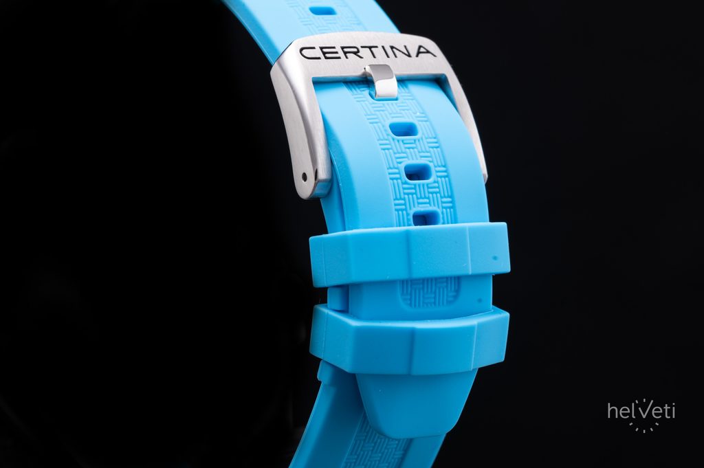 Hodinky Certina C047.452.17.011.00 majú puzdro z ušľachtilej ocele, ktoré dopĺňa modrý gumený remienok s tŕňovou sponou a rýchloupínacím systémom. Hodinky poháňa švajčiarsky strojček ETA F06.865 na batériový pohon. Okrem ukazovateľa dátumu má aj funkciu EoL (End of Life), ktorá majiteľa upozorní na vybitú batériu.