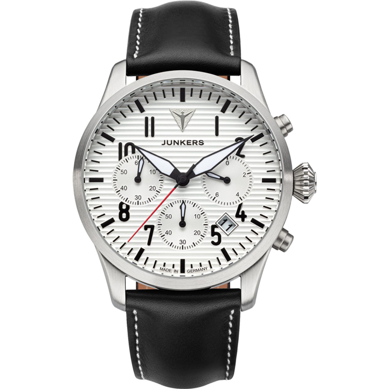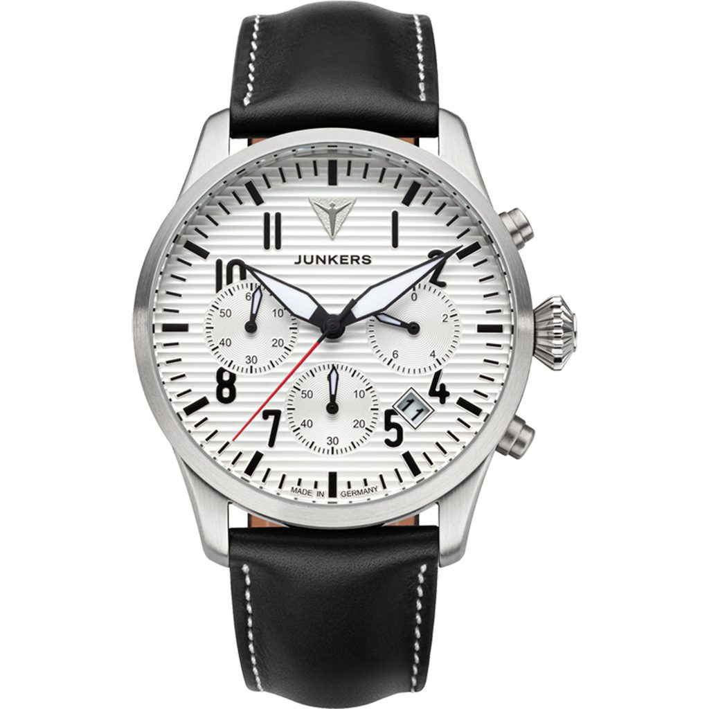 Hodinky Junkers Flieger Chronograph 955.01.03 z modelového radu Flieger ponúkajú typický pilotný štýl. Ocenia ho nielen nadšenci letectva, ale všetci, ktorí hľadajú prehľadný model na každodenné nosenie.