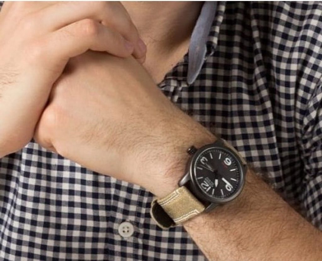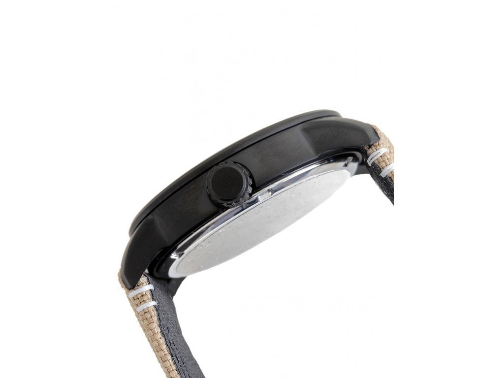 Puzdro hodiniek Citizen BM8476-23EE je vyrobené z nehrdzavejúcej ocele s PVD úpravou, remienok je kombináciou textilu a kože. Vo vnútri puzdra spoľahlivo pracuje vlastný strojček Citizen E101, ktorý má ľahkú nabíjateľnú batériu s rezervou energie až na 6 mesiacov , ako aj funkciu indikátora vybitia batérie skokovým posunom sekundovej ručičky po 2 sekundách. Praktickou funkciou je potom zobrazenie dátumu a dňa v týždni na tradičnej pozícii 3 hodín.