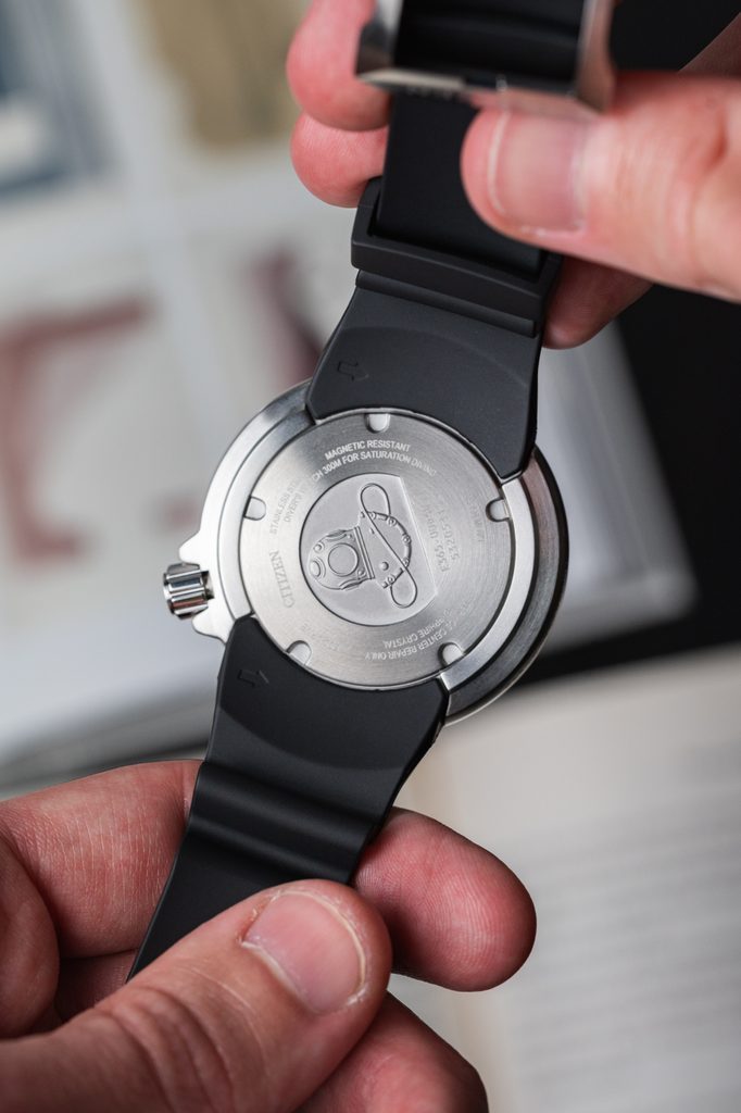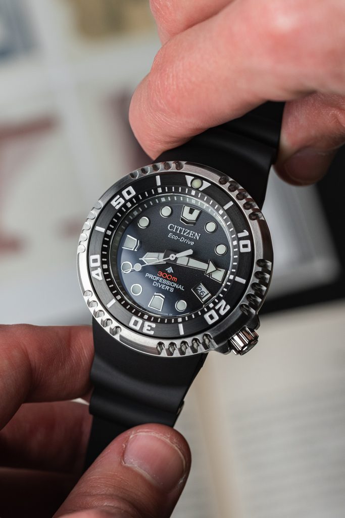 Vodotesnosť hodiniek Citizen Promaster Professional Diver 300 Eco-Drive BN1024-01E je 300 m, vďaka čomu sú vhodné na používanie vo vode vrátane hĺbkového potápania. Vodotesnosť podporuje skrutkovacia korunka a hodinky sú vybavené aj automatickým héliovým ventilom. Tento model dokonca spĺňa normu ISO 6425 pre potápanie, čo možno jasne vyčítať z nápisu "Divers" na ciferníku. To znamená napríklad deklarovanú odolnosť voči magnetickým poliam, testovanie na 125 % deklarovanej hodnoty vodotesnosti alebo potrebu jednosmerne rotujúcej potápačskej lunety. Lepšiu čitateľnosť za zhoršených svetelných podmienok zabezpečuje luminiscencia aplikovaná na indexy a ručičky.