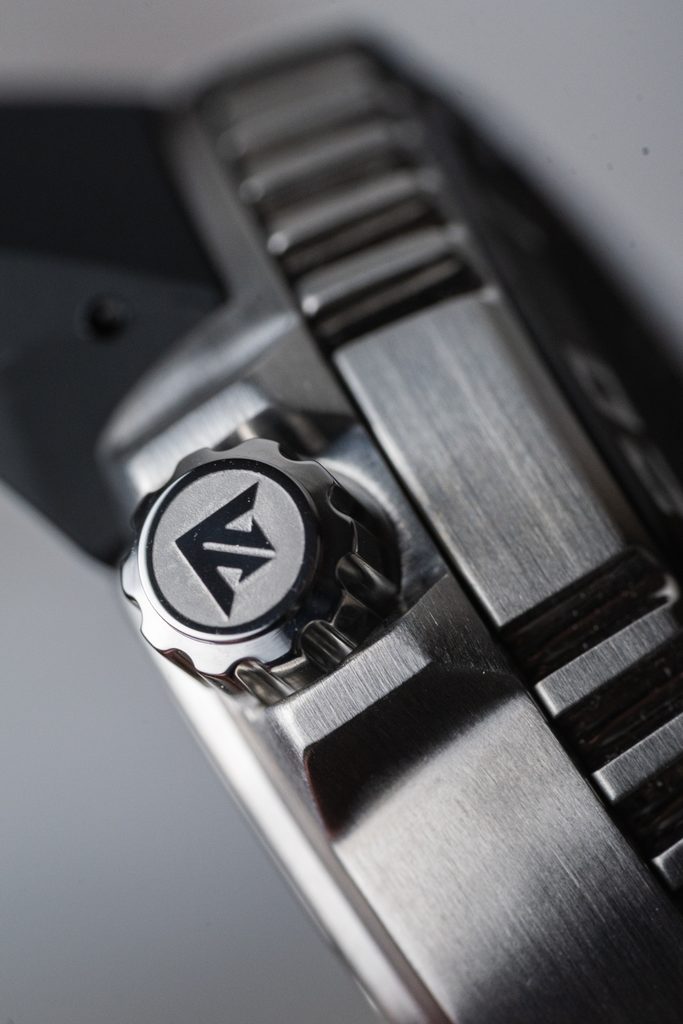 | Funkcia | Dátum, Otočná luneta, Korunka skrutkovacia, ISO 6425 Divers |
