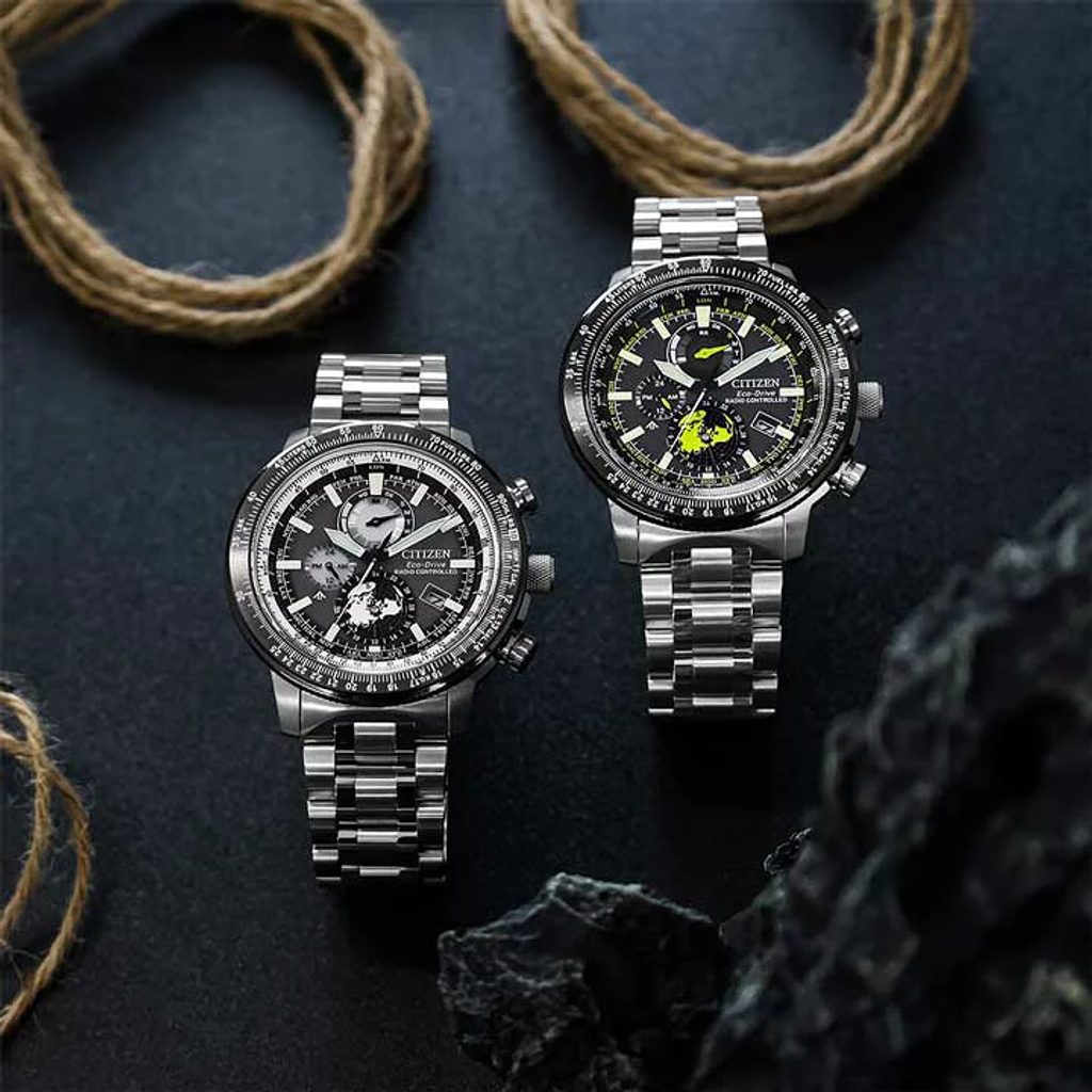 Puzdro hodiniek Citizen BY3006-53H je vyrobené z nehrdzavejúcej ocele, rovnako ako ich náramok. Vo vnútri tohto puzdra pracuje strojček Citizen H864, ktorý ponúka absolútne presný čas vďaka systému Radio-Controlled, t. j. synchronizácii času pomocou rádiového signálu. Spoľahnúť sa môžete aj na ďalšie funkcie, ako je indikácia stavu batérie, prevencia prebíjania, upozornenie na nedostatočné nabitie batérie pomocou dvojsekundových skokov sekundovej ručičky alebo prepnutie do úsporného režimu. Využiť môžete aj funkciu stopiek s presnosťou 1/20 s alebo 24-hodinový subciferník na pozícii 9 hodín. Veľmi praktické je zobrazenie dátumu a dňa v týždni. Na pozícii 6 hodín nájdeme subciferník severnej pologule, kde šípka ukazuje čas UTC a možno si prečítať približné časy v oblastiach severnej pologule. Obojstranne otočné posuvné meradlo možno použiť aj na jednoduché výpočty pomocou posuvného meradla.