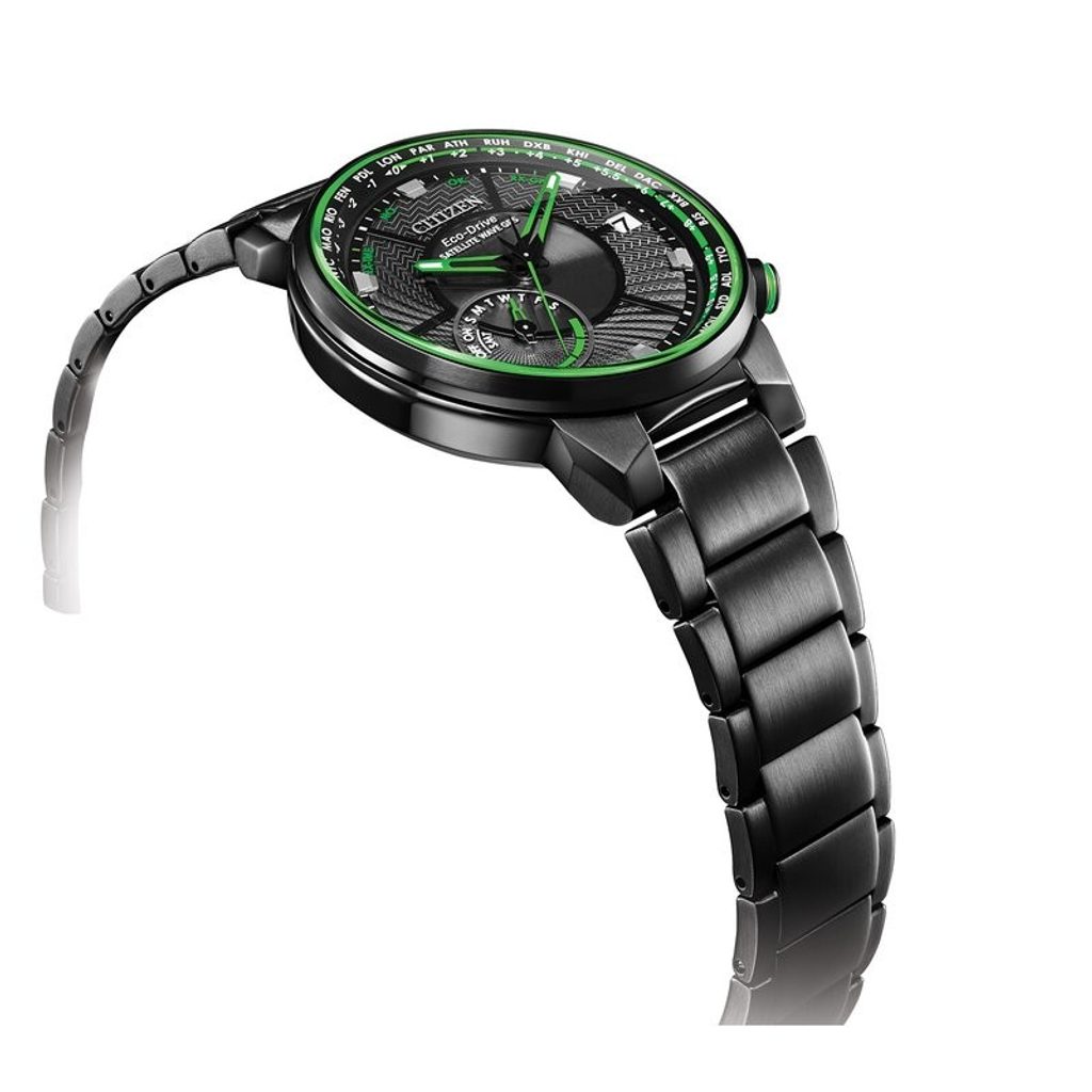 Hodinky Citizen CC3075-80E mají pouzdro vyrobené z ušlechtilé oceli s PVD úpravou (v tomto případě se jedná o technologii IP) a na ruce drží díky ocelovému náramku téže úpravy. Uvnitř pouzdra se skrývá in-house strojek Citizen F150, který disponuje světlem dobíjeným akumulátorem s rezervou chodu až 2 roky (v úsporném režimu až 7 let) a disponuje též funkcí indikátoru vybití akumulátoru. Díky pohonu Eco-Drive tedy odpadá potřeba pravidelné výměny baterie - akumulátor hodinek se dobíjí pomocí světla. S tímto systémem jsou spojeny další funkce hodinek, jako je například ochrana před přebitím, indikace úrovně nabití, indikace intenzity dopadajícího světla - rozlišení intenzity nabíjení v 7 úrovních. Hlavní předností je pak GPS satelitní řízení času, kdy dochází ke změně času dle polohy na základě příjímaných signálů a možnosti indikace času ve 40 časových zónách a 27 městech. Užitečnou funkcí je také nekonečný kalendář, zajišťující vždy aktuální údaj na ukazateli data na pozici 3 a ukazateli dne v týdnu na subčíselníku na pozici 8.