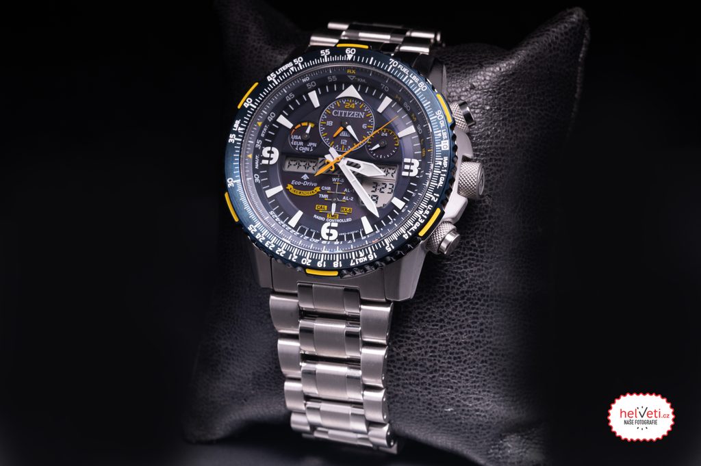 Puzdro vrátane náramku hodiniek Citizen JY8078-52L je vyrobené z nehrdzavejúcej ocele. Vo vnútri tohto puzdra pracuje vlastný strojček Citizen U680, ktorý ponúka absolútne presný čas vďaka systému Radio-Controlled, t. j. synchronizácii času pomocou rádiového signálu. Môžete sa spoľahnúť aj na ďalšie funkcie, ako je indikácia batérie, prevencia prebitia, upozornenie na nedostatočné nabitie pomocou dvojsekundových skokov sekundovej ručičky alebo prepnutie do úsporného režimu. Využiť môžete aj funkciu stopiek, automatický kalendár (zobrazujúci deň, mesiac a rok), časové pásma, letný čas, UTC, časovač, 2x budík, osvetlenie displeja, režim úspory energie 1 a 2, funkcie detekcie otrasov alebo napríklad posuvné pravidlo na jednoduché výpočty.