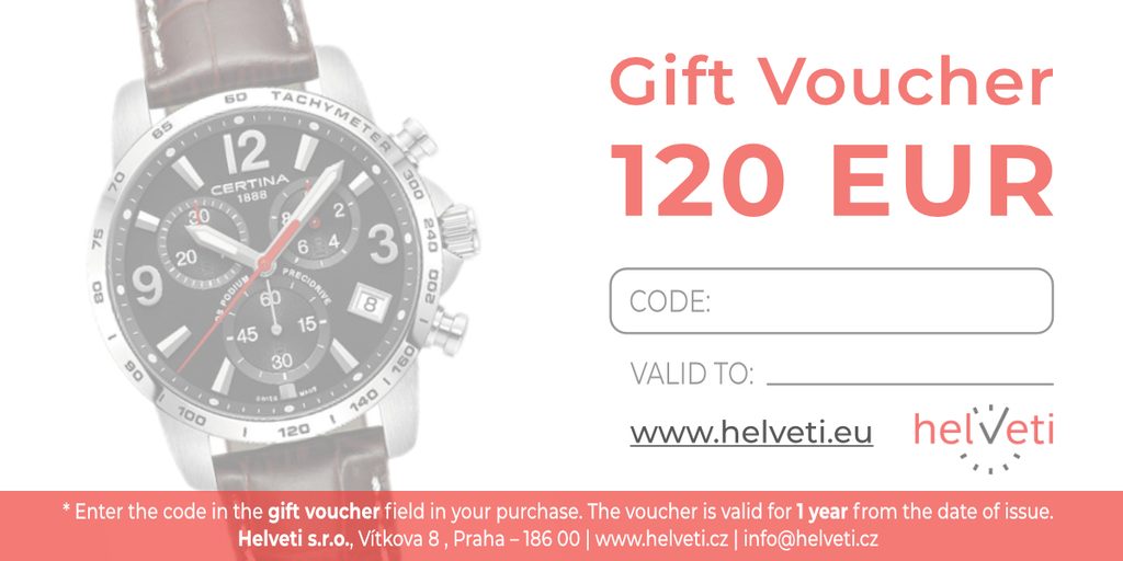 Nemáte odvahu vybrať hodinky pre svojich blízkych? Darujte poukaz v hodnote 150 EUR na nákup hodiniek Wenger, Traser, Seiko, Certina, Boccia Titanium a ďalšie. Držiteľ si potom sám vyberie podľa svojho vkusu a preferencií svoje nové hodinky.