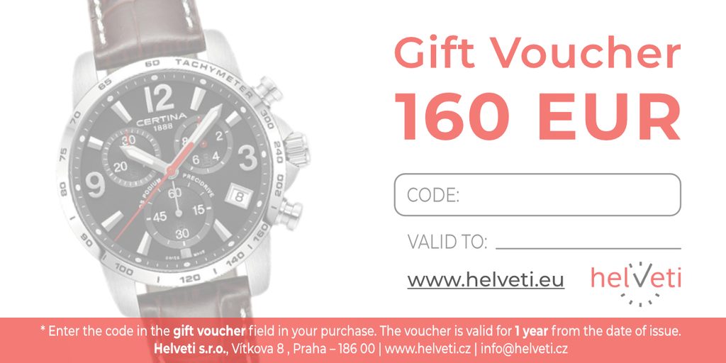 Nemáte odvahu vybrať hodinky pre svojich blízkych? Darujte poukaz v hodnote 200 EUR na nákup hodiniek Wenger, Traser, Seiko, Certina, Boccia Titanium a ďalšie. Držiteľ si potom sám vyberie podľa svojho vkusu a preferencií svoje nové hodinky.