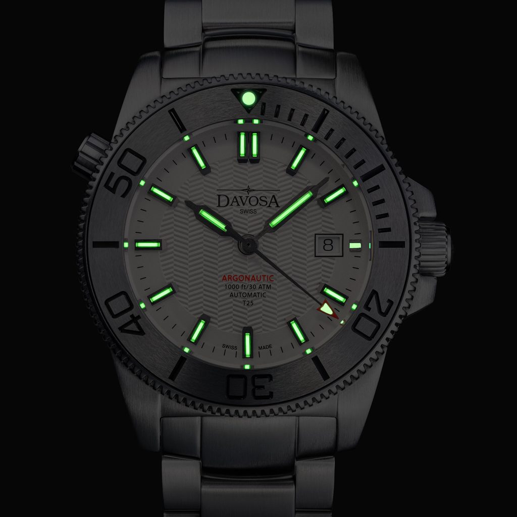 Pánske hodinky Davosa Argonautic Lumis T25 Automatic 161.529.10 patria do série Diving a ponúkajú veľmi atraktívny vzhľad potápačských hodiniek. Vyznačuje sa veľmi odolnou konštrukciou, héliovým ventilom a vynikajúcou čitateľnosťou, ktorú zvyšuje použitie tríciovej luminiscencie . Vďaka svojim vlastnostiam však výborne poslúži nielen pri hĺbkovom potápaní, ale aj pri každodennom nosení.
