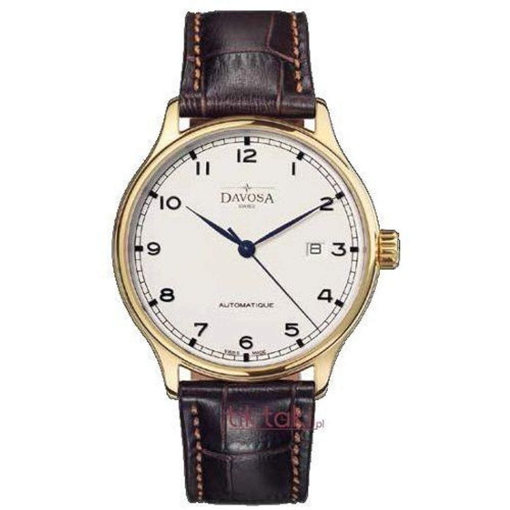 Hodinky Davosa Classic Gents 161.464.15 sú spoločenské hodinky najvyššej úrovne. Atraktivitu podčiarkuje puzdro pozlátené technológiou PVD. Zafírové sklíčko chráni svetlý ciferník, ktorý dopĺňajú modré číslice a ručičky a dátumovka. Skrutkovacia zadná časť puzdra je vybavená priezorníkom pre ozdobný automatický strojček DAV 3021 (na báze Sellita SW 200 alebo ETA 2824). Túto súpravu dopĺňa atraktívny hnedý kožený remienok. Hodinky sú vodotesné do 5ATM.