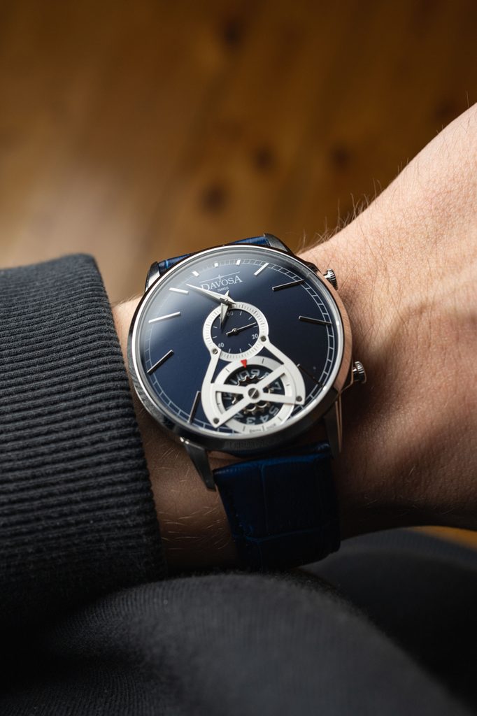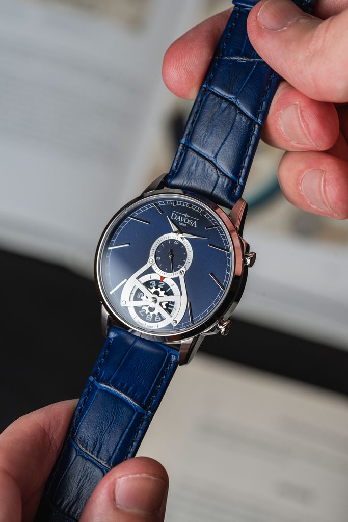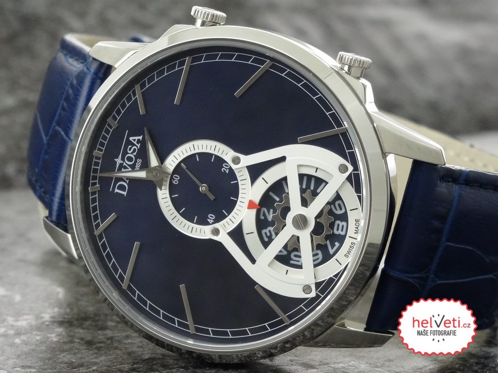 Model Davosa CUORE² ,ktorý na prvý pohľad zaujme sekundovou ručičkou umiestnenou mimo stredu a tvarom samotných ručičiek. Vďaka svojej veľkosti 42 mm padne na každú mužskú ruku. Puzdro hodiniek dokonale dopĺňa kvalitný kožený remienok s imitáciou krokodílej kože. Zobrazenie druhého časového pásma je tu riešené formou dodatočného subciferníka, ktorý je poháňaný samostatným strojčekom. Indexy sú ručne nanášané, čo vytvára magický vzhľad celých hodiniek. Sklo hodiniek je vyrobené zodolného zafíru , ktorý len tak niečo nepoškriabe. Vodotesnosť hodiniek je 5ATM.
