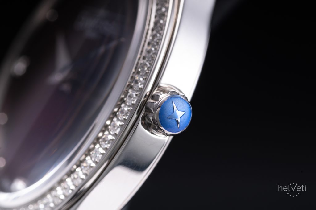 HodinkyDavosa Luna Star Quartz majú priehľadný perleťový ciferník, ktorý vhodne dopĺňajú zirkóny na ciferníku a puzdre. Dizajn hodiniek zaujme na každom ženskom zápästí.