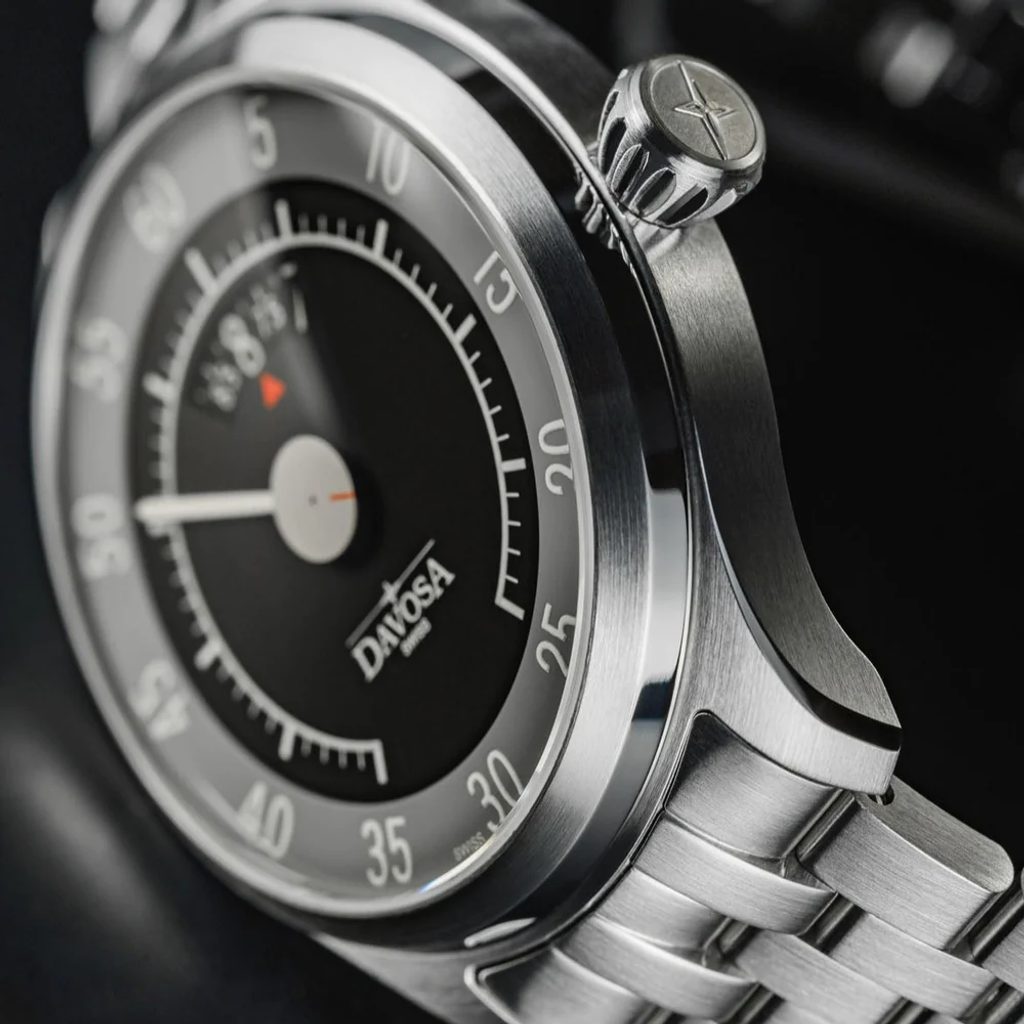 Puzdro hodiniek Davos 161.587.20 je vyrobené z ušľachtilej ocele a vhodne ho dopĺňa náramok z rovnakého materiálu. Vo vnútri puzdra tiká mechanický strojček DAV 3023 (na báze ETA 2834 alebo Sellita SW 240) s automatickým naťahovaním. Jeho prácu s frekvenciou 28 800 polfrekvencií za hodinu možno pozorovať vďaka priehľadnému ciferníku. Tento strojček bol upravený tak, aby ciferník mohol pripomínať prístrojové dosky automobilov z 50. a 60. rokov 20. storočia, a to nahradením hodinovej ručičky otočným diskom, ktorý zobrazuje hodiny v okienku pod pozíciou 12 s elegantnou červenou šípkou. Namiesto sekundovej ručičky zobrazuje sekundy malý disk v strede ciferníka s červenou čiarou. Medzi nimi sa pohybuje klasická minútová ručička.