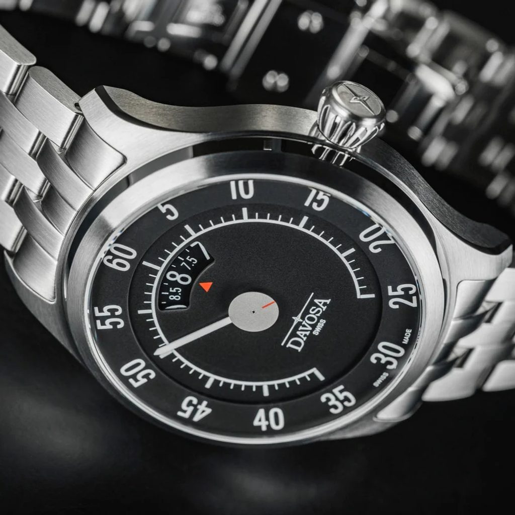 Puzdro hodiniek Davos 161.587.50 je vyrobené z ušľachtilej ocele a vhodne ho dopĺňa náramok z rovnakého materiálu. Vo vnútri puzdra tiká mechanický strojček DAV 3023 (na báze ETA 2834 alebo Sellita SW 240) s automatickým naťahovaním. Jeho prácu s frekvenciou 28 800 polfrekvencií za hodinu možno pozorovať vďaka priehľadnému ciferníku. Tento strojček bol upravený tak, aby ciferník mohol pripomínať prístrojové dosky automobilov z 50. a 60. rokov 20. storočia, a to nahradením hodinovej ručičky otočným diskom, ktorý zobrazuje hodiny v okienku pod pozíciou 12 s elegantnou červenou šípkou. Namiesto sekundovej ručičky zobrazuje sekundy malý disk v strede ciferníka s červenou čiarou. Medzi nimi sa pohybuje klasická minútová ručička.