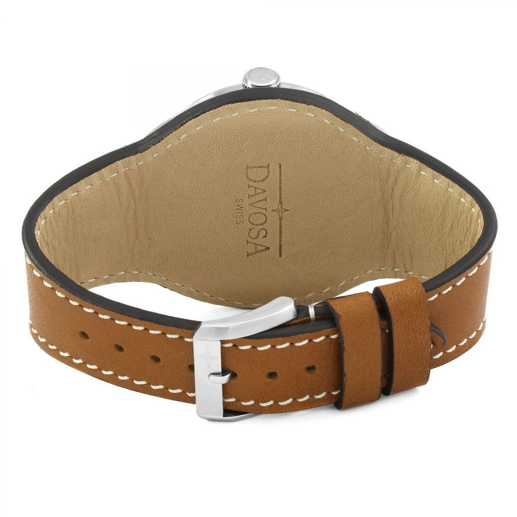 Hodinky Davosa Axis 161.572.56 zaujmú každého, kto hľadá všestranné, skvele čitateľné hodinky v netradičnom dizajne. Čierny ciferník je chránený antireflexným zafírovým sklíčkom. Vo vnútri bije klasický, mechanický strojček DAV 3021 ( vychádzajúci z ETA 2824 alebo Sellita SW 200) s frekvenciou 4 Hz a rezervou náťahu 38 h. Oceľové puzdro dopĺňa atraktívny, kožený remienok s podložkou pod skrutkovacím ciferníkom.