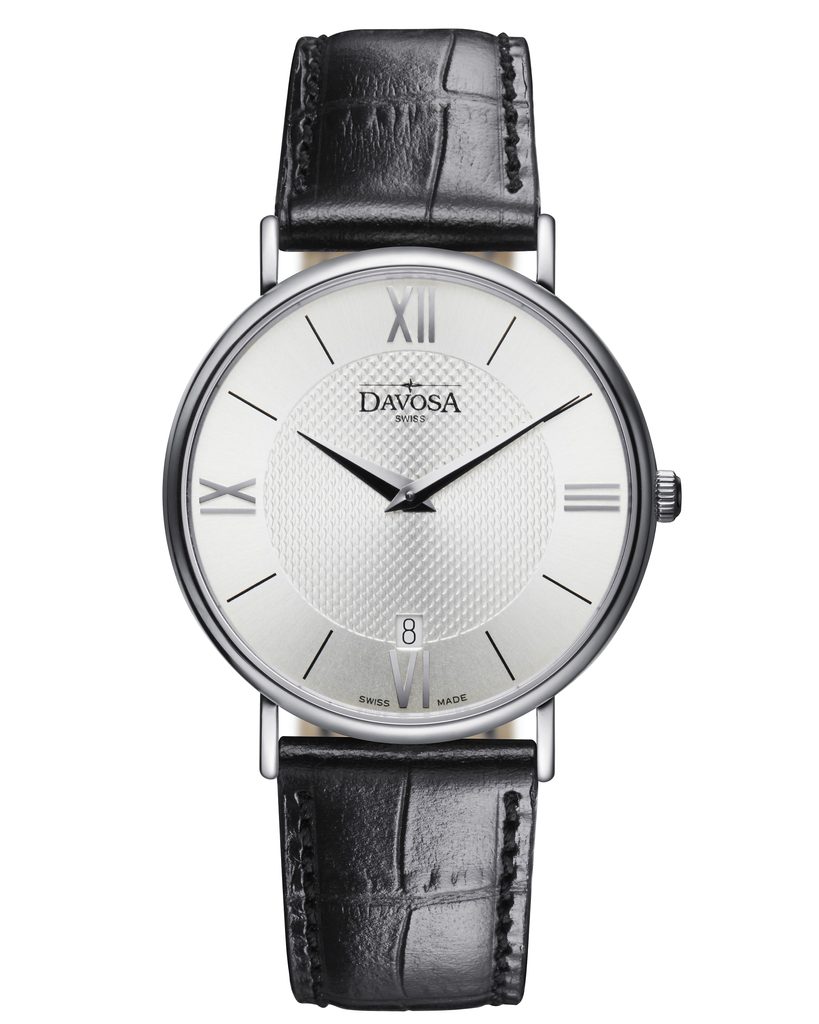 Davosa Pianos II sú elegantné spoločenské hodinky, ktoré majú štruktúrovaný ciferník a vďaka tenkému puzdru sa veľmi pohodlne nosia.