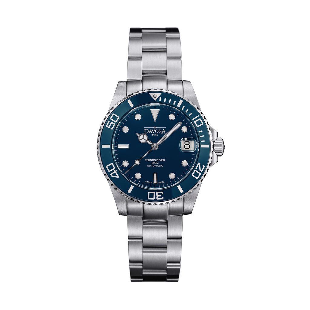 Hodinky Davosa Ternos Automatic Medium 166.195.40 patria do radu Diving a ponúkajú veľmi atraktívny vzhľad potápačských hodiniek. Vyznačujú sa veľmi odolnou konštrukciou a výbornou čitateľnosťou. Vďaka svojim vlastnostiam sú však vynikajúce nielen na potápanie, ale aj na každodenné nosenie. Vďaka priemeru puzdra 36,5 mm sa táto verzia výborne hodí aj na dámske alebo menšie pánske zápästia.