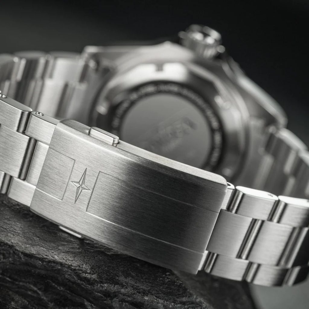 Ďalším zaujímavým prvkom hodiniek Ternos Professional Nebulous je prepracovaný oceľový strojček TriaLink. Jednotlivo skrutkované pevné články strojčeka sú na oboch stranách ukončené sklopnou sponou novo vyvinutou spoločnosťou Davosa, ktorá vďaka jemnému nastaveniu WaveSlide vnútri spony umožňuje pohodlné nastavenie bez použitia ďalších nástrojov.