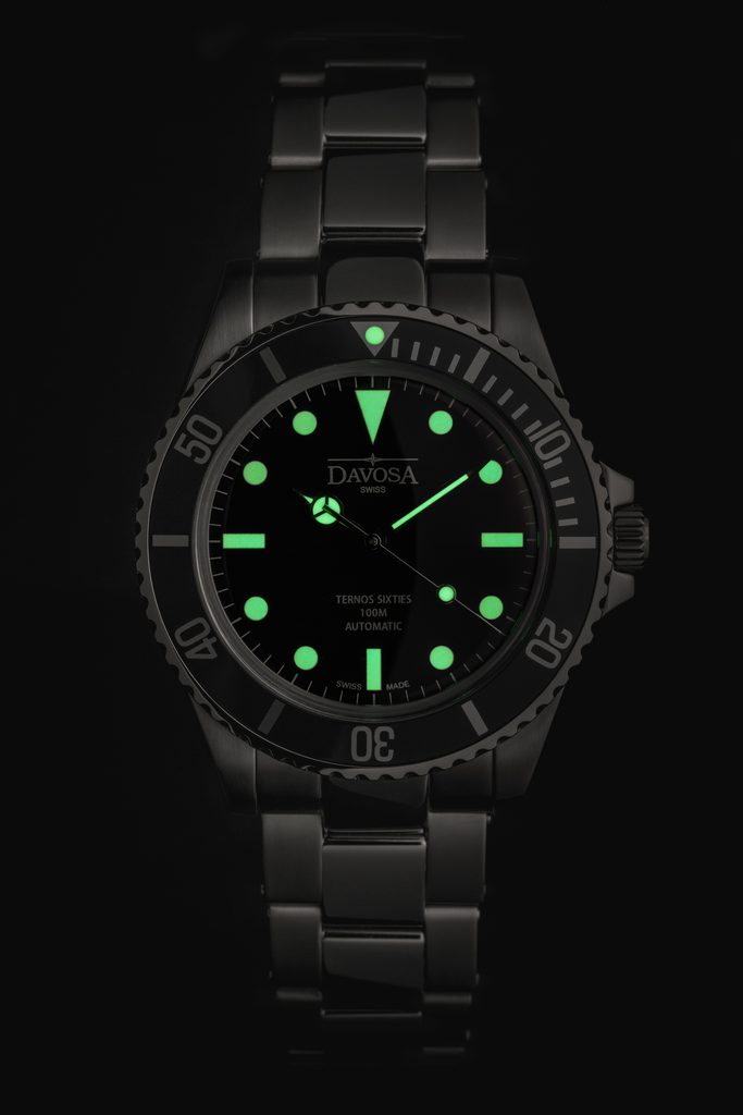 Davosa Ternos Sixties Automatic 161.525.40 sú športové automatické hodinky. Ich vzhľad vychádza z obľúbeného modelu Ternos, takže prinášajú klasický potápačský dizajn. Vďaka subtílnejšiemu dizajnu sú však vhodnejšie na každodenné nosenie a tiež pre menšie zápästia. Tento model svojím výkonom a spracovaním oživuje ducha 60. rokov minulého storočia.