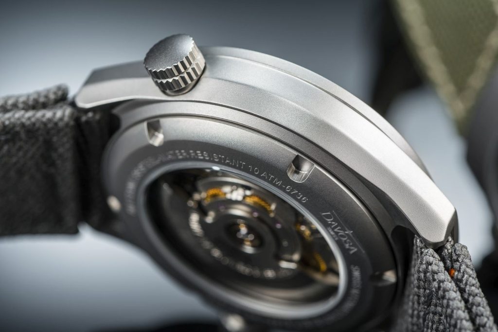 Hodinky Davosa Trailmaster 161.518.55 zaujmú každého, kto hľadá univerzálne, skvele čitateľné hodinky v netradičnom dizajne. Puzdro so zakrytou medzerou medzi ušami je vyrobené z ušľachtilej ocele, ale vďaka pieskovaniu má matnú povrchovú úpravu. Čierny ciferník je chránený zafírovým sklíčkom. Vo vnútri bije klasický mechanický strojček DAV 3022 (ktorý vychádza z modelu ETA 2836) s funkciou dátumu, frekvenciou 4 Hz a 40-hodinovou rezervou náťahu, ktorú možno vidieť cez priehľadný zadný kryt. Jeho univerzálnosť podčiarkuje vodotesnosť 10ATM a skrutkovacie zadné viečko. Hodinky sa dodávajú na nylonovom remienku s kontrastným prešívaním.