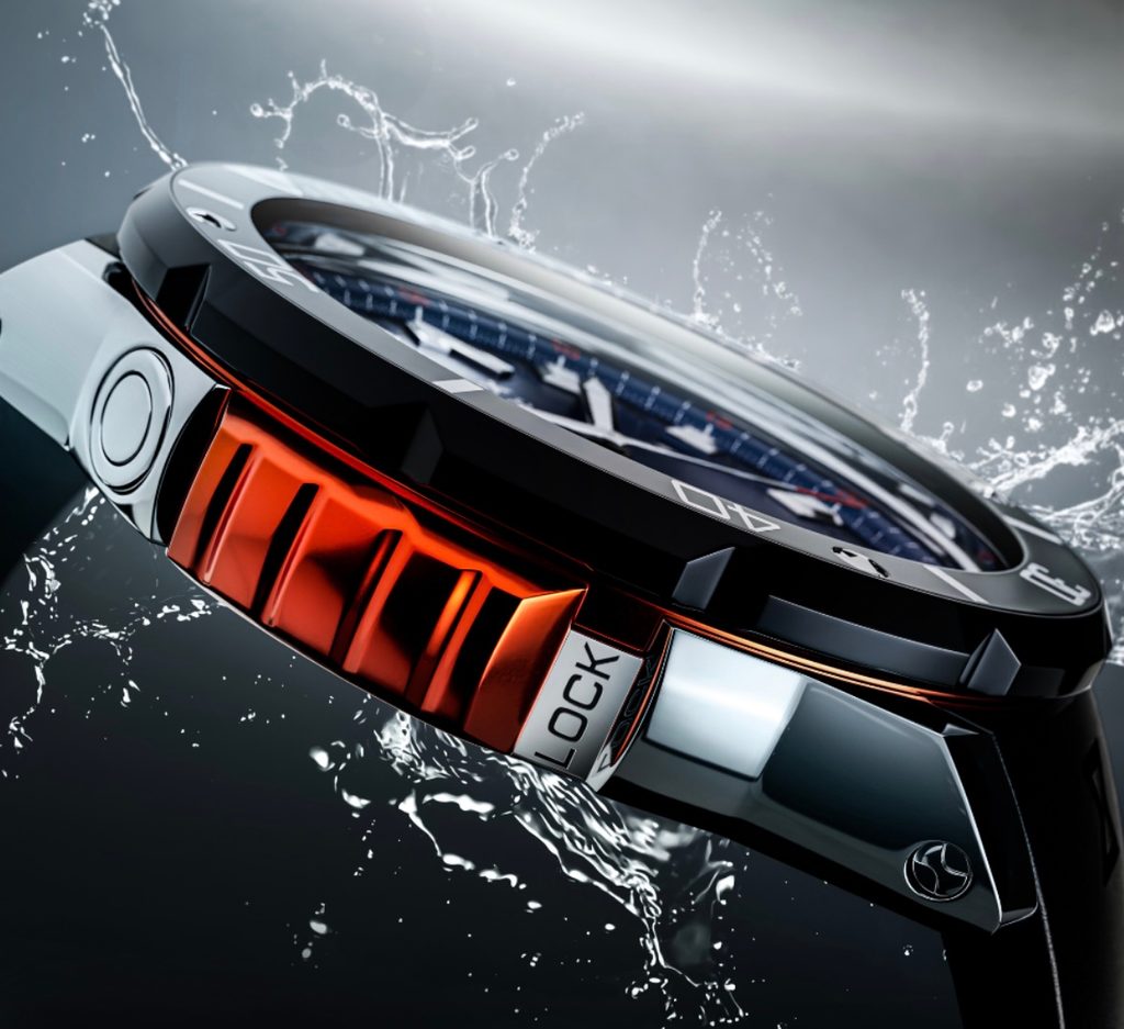 Ikonickým prvkom tejto série je otočná keramická luneta, ktorú môžete na tomto modeli uzamknúť vďaka charakteristickému systému "Bezel Lock". Hodinky majú hrubé zafírové sklíčko. Vodotesnosť tohto modelu je 30 ATM/300 m.