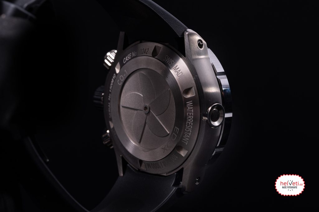 Puzdro hodiniek je vyrobené z kvalitného ultraľahkého titánu s PVD povrchovou úpravou v matnej sivej farbe a vďaka kombinácii s remienkom z prírodného kaučuku najvyššej kvality vážia hodinky len 130 g, čo umožňuje ich veľmi pohodlné nosenie. Sivý ciferník je chránený zafírovým sklíčkom, ktoré je vysoko odolné proti poškriabaniu.