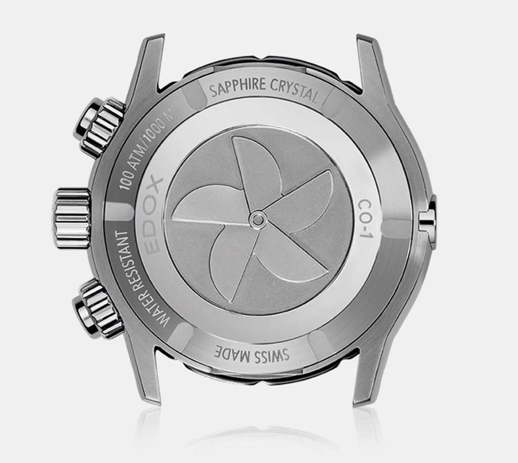 Vodotesnosť 1000 m je podporená skrutkovacou korunkou a tlačidlami stopiek a zadným krytom s dvojitým tesnením, čo zaručuje odolnosť pri akomkoľvek kontakte s vodou vrátane hĺbkového potápania. Hodinky sú vybavené automatickým héliovým ventilom na bezproblémové vyrovnanie tlaku pri vynorení.