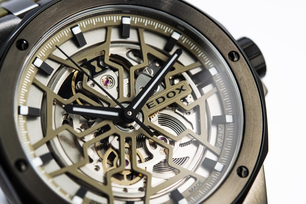 Hodinky EDOX Delfin Mecano Automatic 85303-357GNCAVV poháňa švajčiarsky mechanický strojček so samonáťahom Sellita SW200. Je osadený 26 drahokamami, pracuje s frekvenciou 28 800 polobitov za hodinu a rezerva náťahu je klasických 42 hodín. Stroj má aj funkciu hackovania a možnosť ručného navíjania.