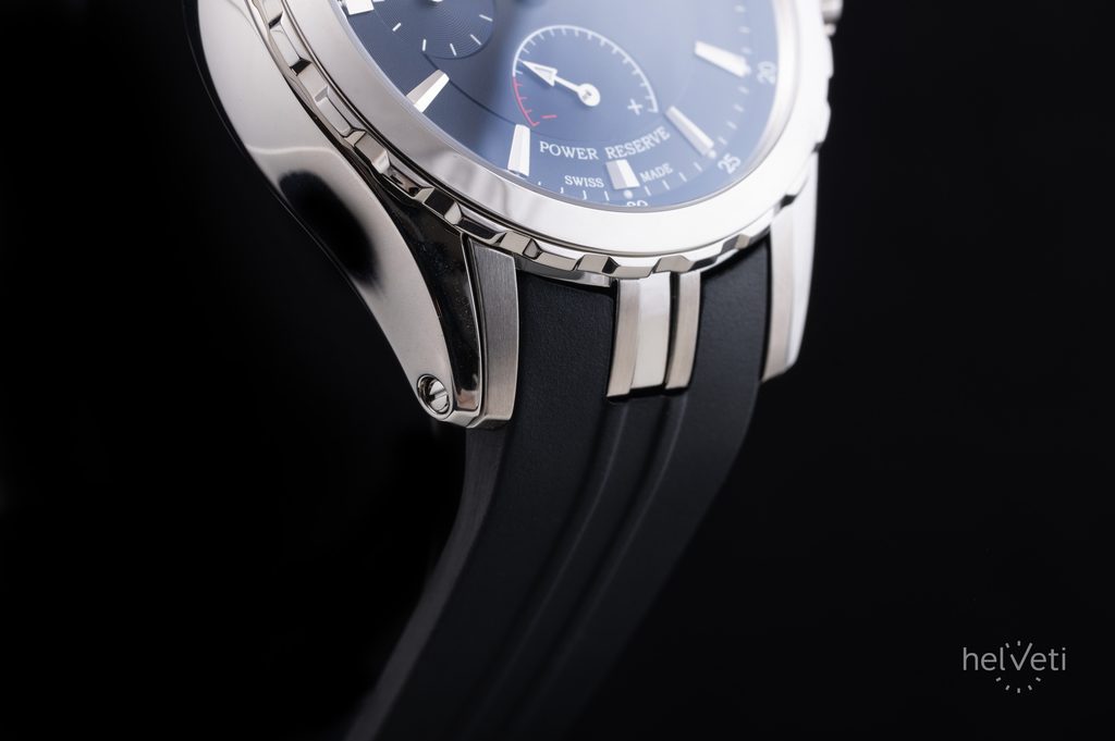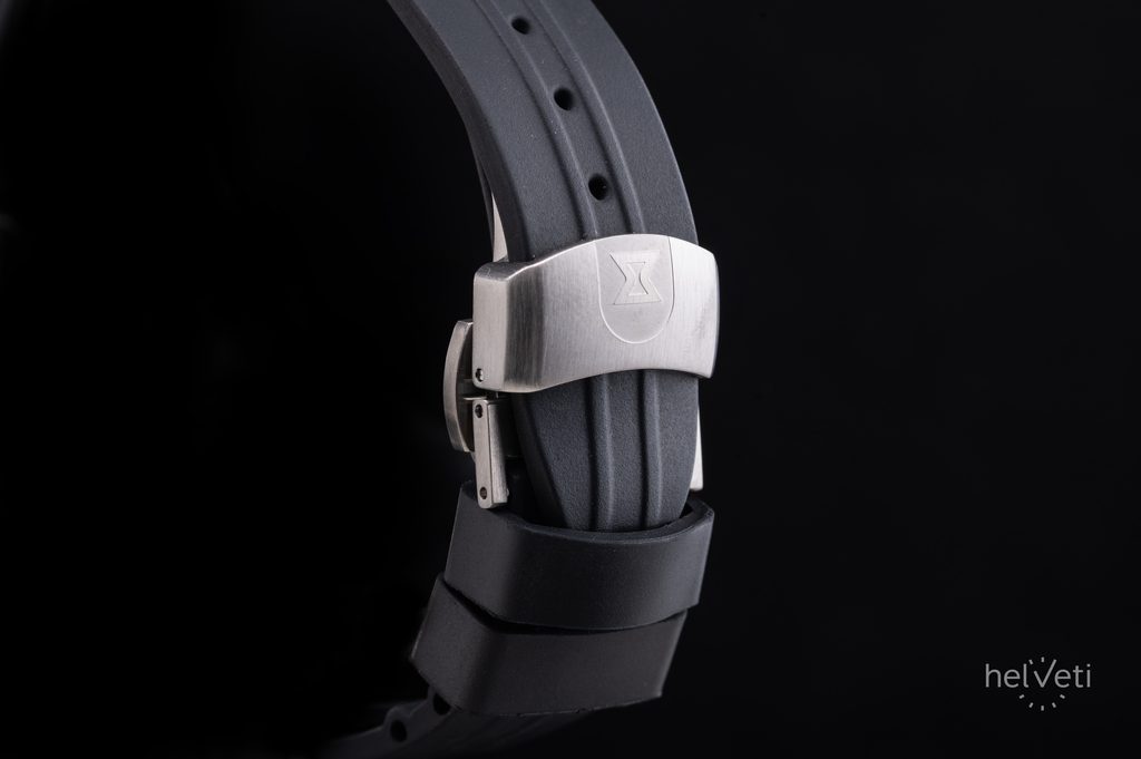 Kvalitné puzdro z ušľachtilej ocele dopĺňa čierny gumený remienok. Vodotesnosť tohto modelu je 300 m, takže hodinky vydržia aj hlbokomorské potápanie. Dobrú vodotesnosť zabezpečuje aj dvojité tesnenie korunky. Priemer puzdra je 40 mm, takže sa hodí na väčšinu pánskych zápästí.