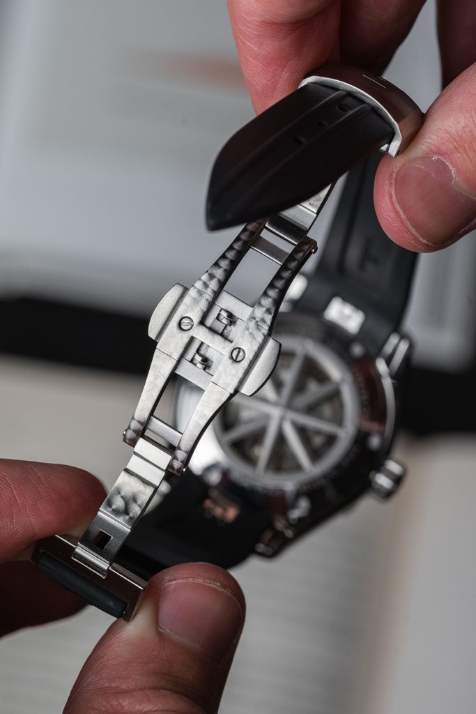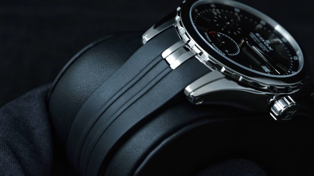 Kvalitné puzdro z ušľachtilej ocele dopĺňa čierny gumený remienok. Vodotesnosť tohto modelu je 300 m, takže hodinky vydržia aj hlbokomorské potápanie. Dobrú vodotesnosť zabezpečuje aj dvojité tesnenie korunky. Priemer puzdra je 40 mm, takže sa hodí na väčšinu pánskych zápästí.