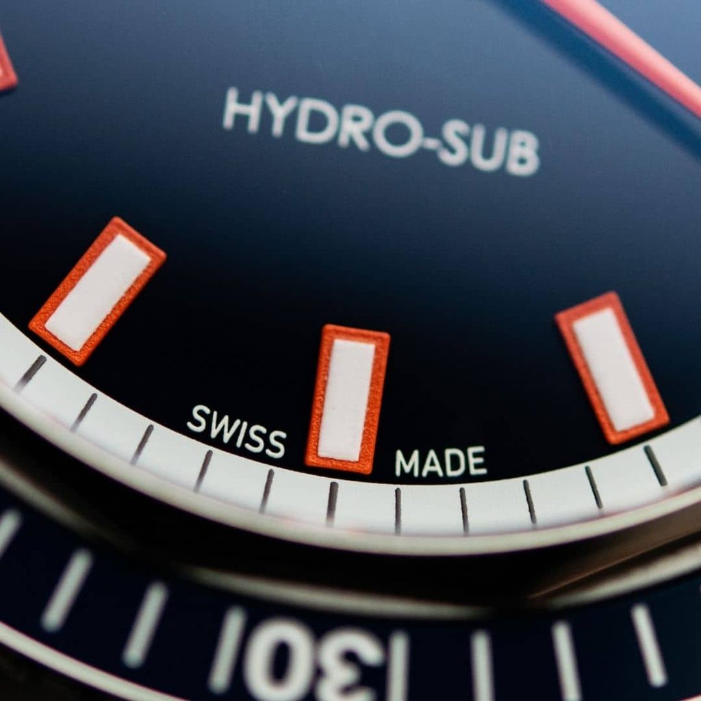 Zafírové sklíčko s hrúbkou 2,5 mm s antireflexnou vrstvou na oboch stranách zaisťuje krištáľovo čistý pohľad na ciferník, ktorý je nevyhnutný pri potápaní. Nezameniteľné línie pôvodných hodiniek z roku 1965 sú prenesené do EDOX Hydro-Sub Automatic 80128-3BUM-BUIO Limited Edition. Číselníkové indexy a minútové a hodinové ručičky sú potiahnuté vrstvou Super-LumiNova, luminiscenčným materiálom švajčiarskej výroby, ktorý zaisťuje maximálnu viditeľnosť pod vodou alebo za slabého osvetlenia.