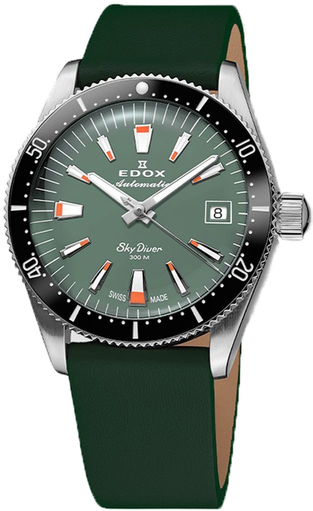 Hodinky Edox SkyDiver 38 Date Automatic 80131-3NC-VI si získavajú svojich majiteľov najmä krásnym športovým vzhľadom a precíznym spracovaním. Dizajn hodiniek odkazuje na klasické padákové modely zo 60. a 70. rokov a spája to najlepšie z dvoch svetov - štýl a estetiku presných pilotných hodiniek a bezchybnú funkčnosť potápačských hodiniek.