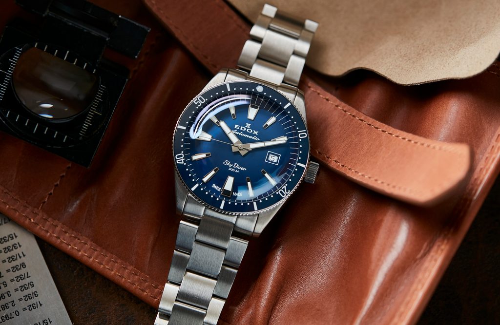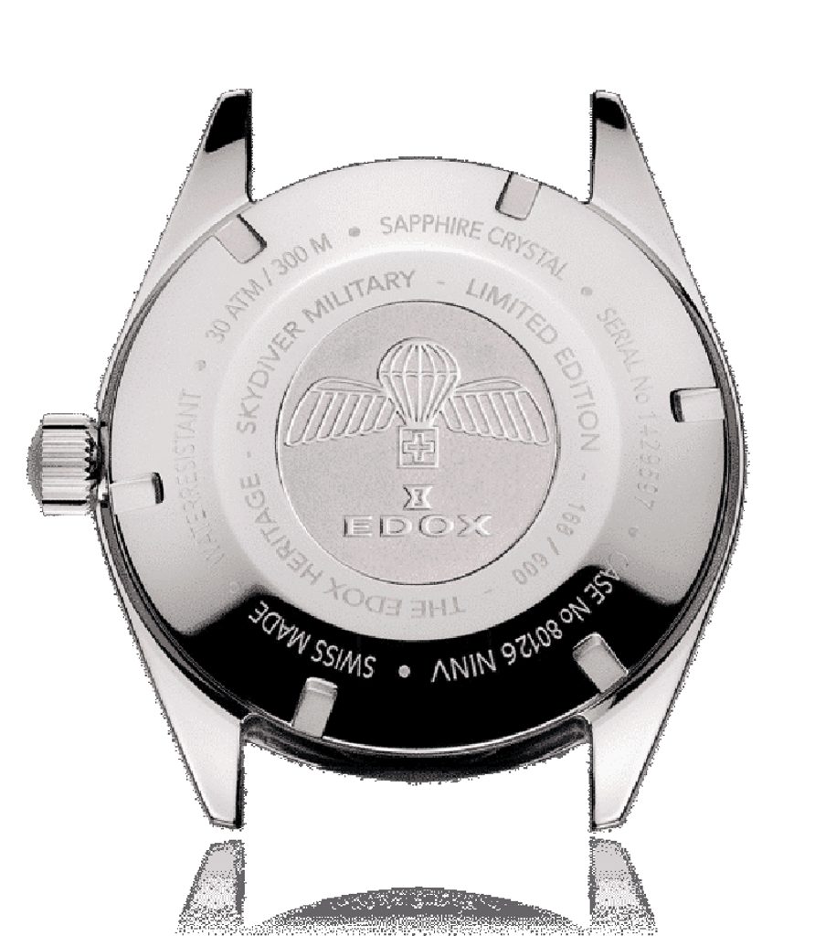 Hodinky EDOX Skydiver Date Automatic 80126-3BUN-BUIN z limitovanej edície si získavajú svojich majiteľov najmä krásnym športovým vzhľadom a precíznym spracovaním. Táto limitovaná edícia 600 kusov je venovaná klasickým výsadkárskym modelom zo 60. a 70. rokov a spája to najlepšie z dvoch svetov - štýl a estetiku presných pilotných hodiniek a bezchybnú funkčnosť potápačských hodiniek.