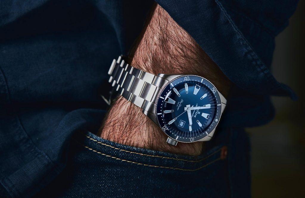 Ciferník odráža presné prístroje, ktoré kedysi sprevádzali dobrodruhov dobývajúcich pevninu, more alebo vzduch. Môžete si tiež vybrať, či chcete hodinky nosiť na oceľovom náramku alebo na modrom remienku (koža/textil), ktorý je súčasťou balenia. Ručičky a indexy sú potiahnuté luminiscenčnou zmesou Superluminova, ktorá zaručuje dlhšiu svietivosť.