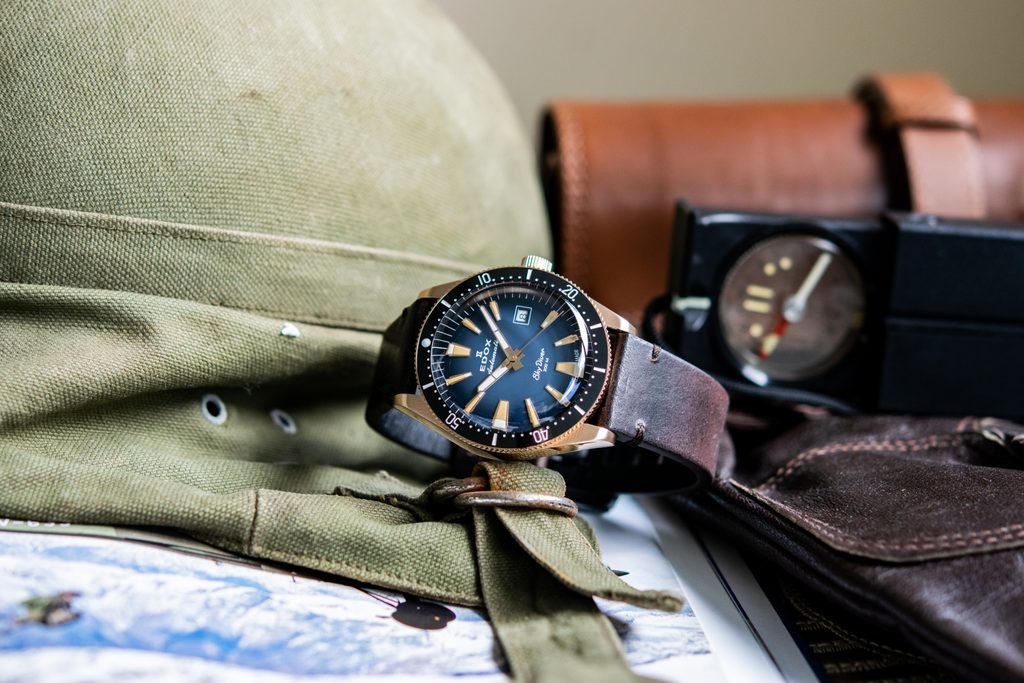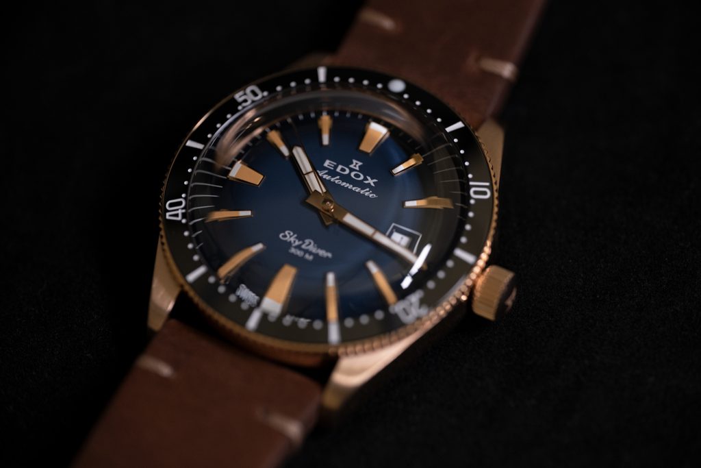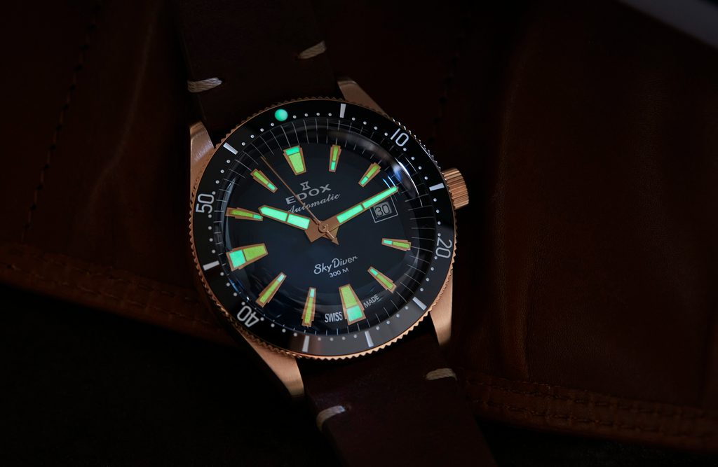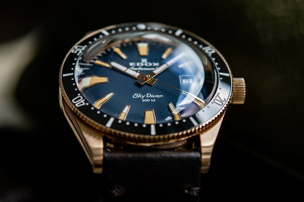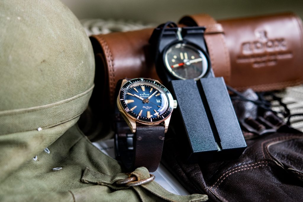 Hodinky EDOX Skydiver Date Automatic 80126-BRN-BUIDR Limited Edition si svojich majiteľov získavajú predovšetkým krásnym športovým vzhľadom a precíznym spracovaním. Táto limitovaná edícia vyrobená v počte 600ks je venovaná klasickým modelom pre parašutistov v 60. a 70. rokoch a kombinuje to najlepšie z dvoch svetov - štýl a estetiku presných pilotných hodiniek a bezchybnú funkčnosť potápačských hodiniek.