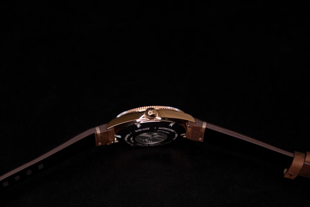 Číselník odráža presné prístroje, ktoré kedysi sprevádzali dobrodruhov dobývajúcu krajinu, more alebo vzduch. Získate tiež na výber z dvoch kožených remienkov (hnedý a čierny), ľahko vymeniteľných cez dômyselne navrhnutý, ale jednoduchý systém pružinových sťažejok, výmenu tak zvládne každý. Ručičky a indexy sú potiahnuté luminiscenčnou zmesou Superluminova, ktorá zaručuje dlhšiu svietivosť.
