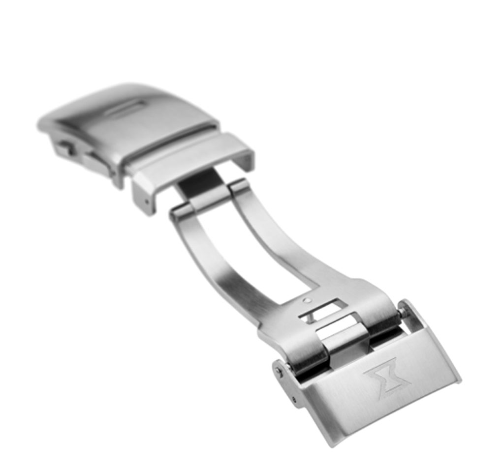Oceľový náramok hodiniek má bezpečnostnú sponu a predĺženie.