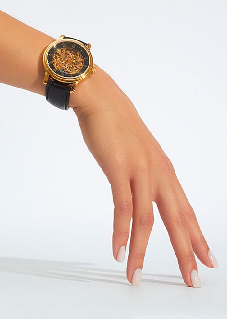 Dámske hodinky Epos Ladies 4390.156.22.25.15 zaujmú pohľadom cez ciferník, cez ktorý možno pozorovať precíznu prácu švajčiarskych hodinárov.