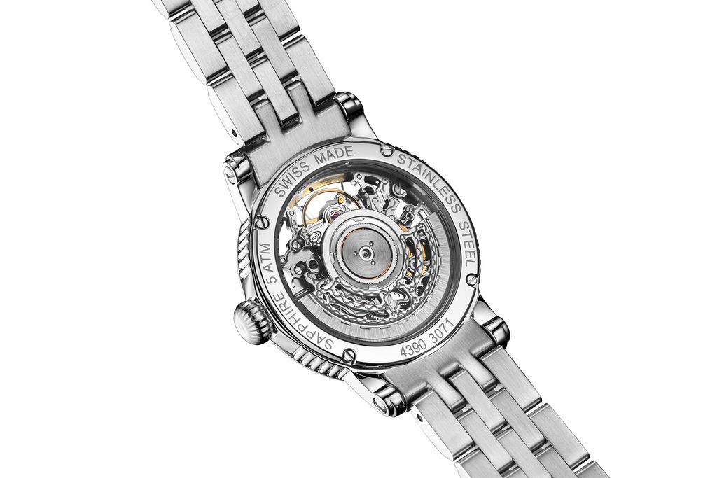 Dámske hodinky Epos Ladies 4390.155.20.25.30 zaujmú priehľadným ciferníkom, cez ktorý možno pozorovať precíznu prácu švajčiarskych hodinárov.