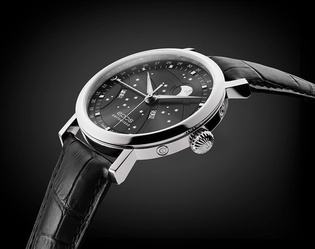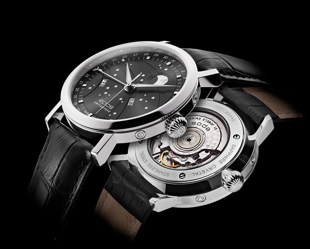 Hodinky Epos Oeuvre D'Art 3440.322.20.14.25 majú ukazovateľ fázy mesiaca, ukazovateľ dňa v týždni a dokonca aj ukazovateľ aktuálneho kalendárneho mesiaca. Veľká ručička zakončená polmesiacom ukazuje na aktuálny kalendárny deň pozdĺž vnútornej lunety hodiniek. Samozrejmosťou je čisté zafírové sklíčko s antireflexnou vrstvou.