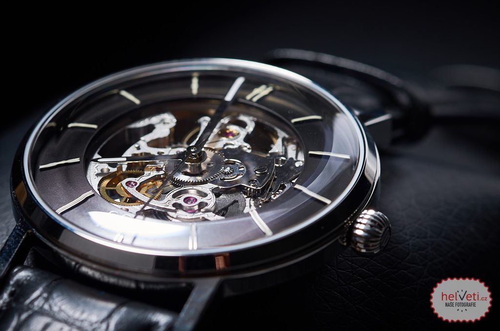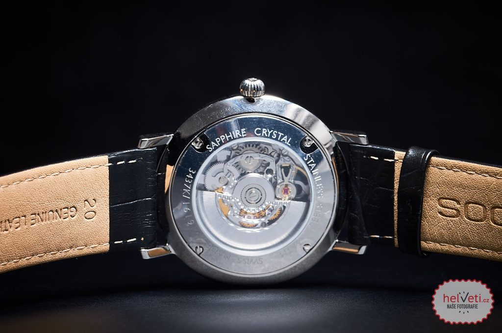 Elegantné pánske hodinky Epos Originale 3437.135.20.15.25 na prvý pohľad zaujmú priehľadným ciferníkom, cez ktorý je vidieť precízne vyrobený skeletonizovaný automatický strojček Sellita SW200.